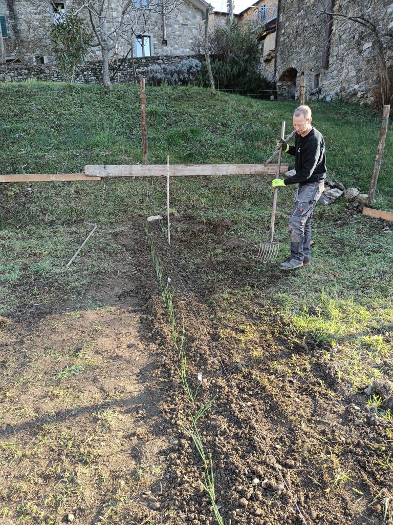 Natuurlijk genieten we ook van het mooie weer hier. Afgelopen zondag zijn we lekker in de tuin bezig geweest. Het begin van de moestuin is gemaakt, er zijn nu uitjes geplant en tuinbonen en doperwten gezaaid. Het is klei grond met veel steentjes, dus erg moeilijk om om te spitten. Elke keer een klein stukje dan komen we er ook. En we kunnen toch nog niet alles planten dus dat komt goed uit.